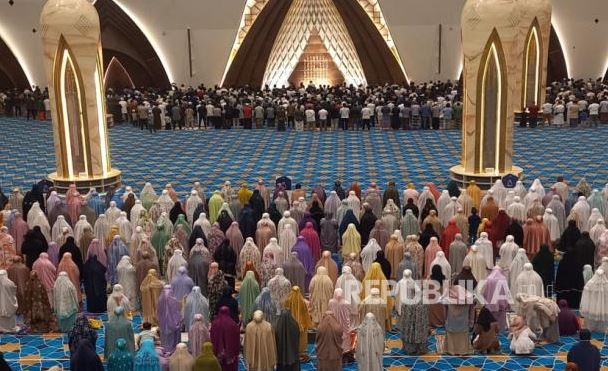Ratusan umat Islam mengikuti shalat tarawih pertama pada malam 1 Ramadhan 1444 Hijriah di Masjid Raya Al Jabbar, , Rabu (22/3/2023) malam.
