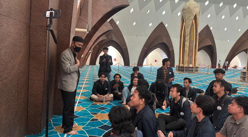 Mahasiswa semester tiga jurusan Komunikasi dan Penyiaran Islam Universitas Islam Negeri Sunan Gunung Djati (KPI UIN SGD) Bandung menggelar workshop tentang penulisan berita dakwah berbasis masjid di Ruang Edukasi Masjid Raya Al Jabbar Bandung, Rabu (8/10/2025).